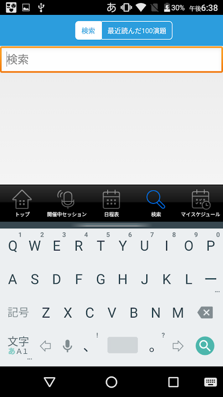 会期中、その時刻に発表されているセッションが一覧表示します。
