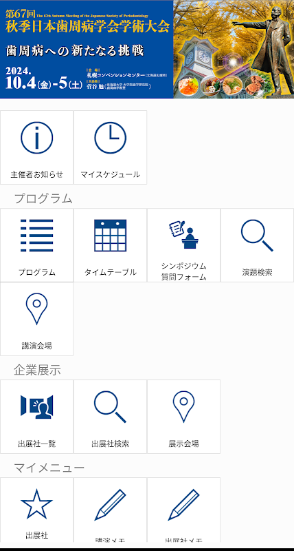 यह ऐप ``जापानी सोसायटी ऑफ पेरियोडोंटोलॉजी के 67वें शरद अकादमिक सम्मेलन'' के लिए एक इलेक्ट्रॉनिक सार ऐप है।