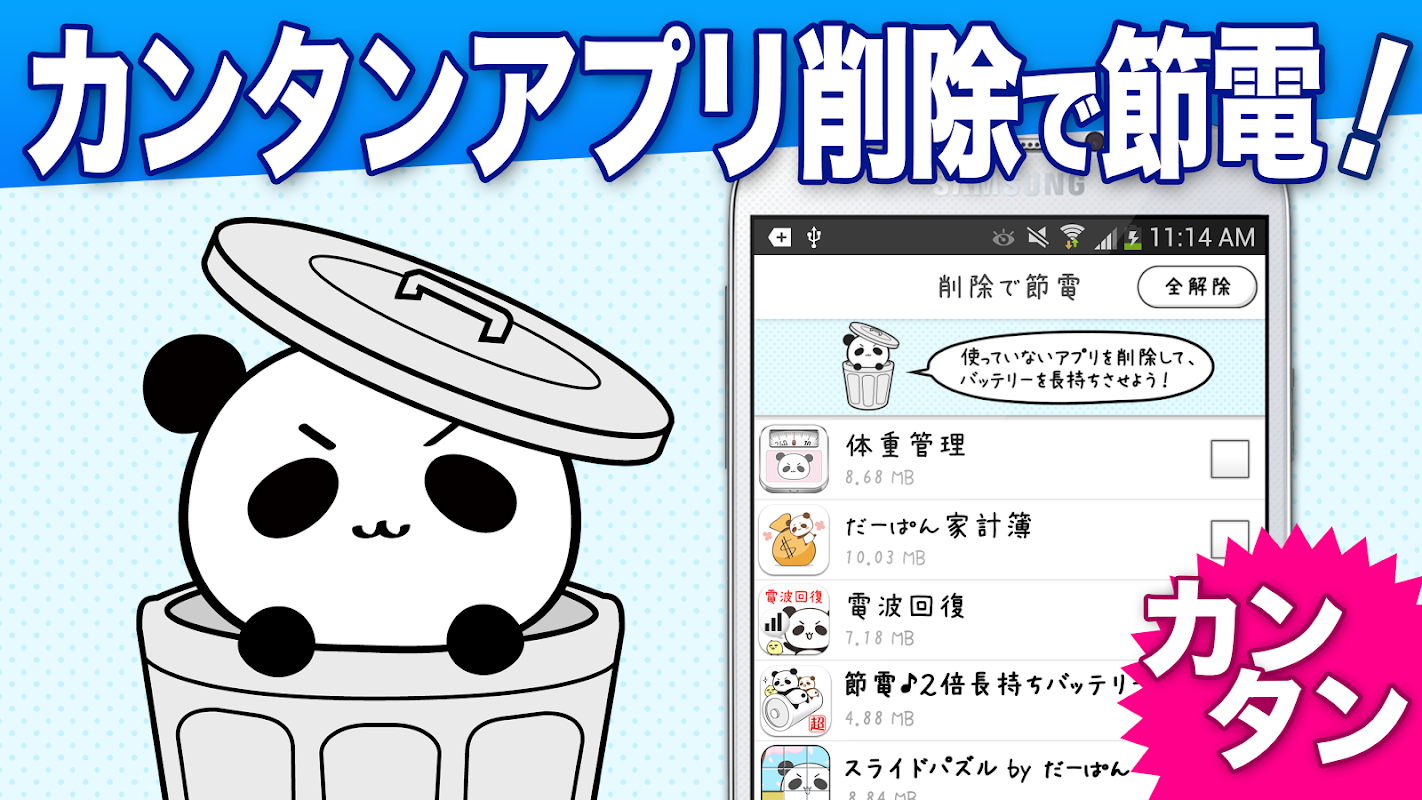 ・電池残量を可愛いパンダ「だーぱん」が教えてくれます!