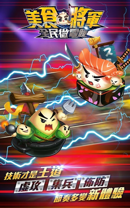 《美食將軍》小籠包、握壽司、禦飯糰…各位美食將軍陪你上戰場攻城掠地!考驗你的臨場佈陣能力、支援四人即時對戰,豐盛的美食大戰開動!拼一場鬥智鬥力【微電競】!