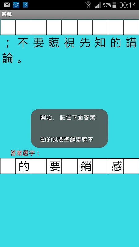 本遊戲中的經文採用和合本聖經,繁簡體俱備。遊戲目的是幫助你熟悉經文,進而存記心中,成為你腳前的燈、路上的光。