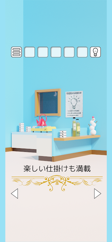 この脱出ゲームはタップのみの簡単な操作で、最後まで無料でお楽しみいただけます。