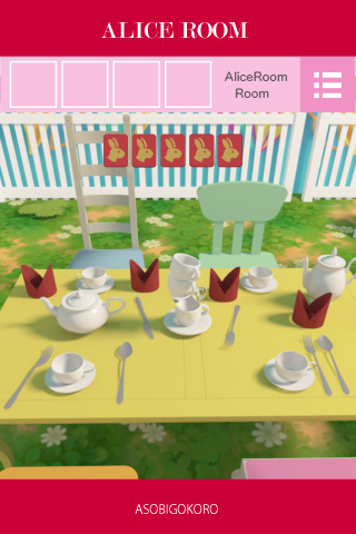 ・不思議な部屋、うさぎの部屋、森の中、お茶会の部屋、女王の部屋...
