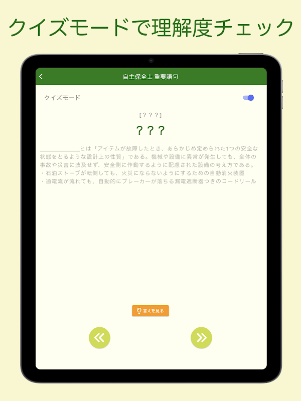 इसमें एक क्विज़ मोड भी है जो महत्वपूर्ण शब्दों को छुपाता है, जिससे आप आसानी से जांच सकते हैं कि आप महत्वपूर्ण शब्दों को समझते हैं या नहीं।