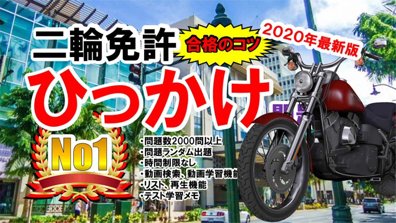 自動二輪運転免許本試験用の問題を出題する免許取得の為の勉強アプリです。 主にひっかけ問題を全般に集めています。標識イラスト一覧表など暗記用に便利な機能も搭載。
