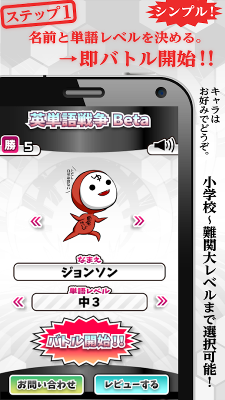 自分の英語力に合わせて対戦を楽しむことが可能です。