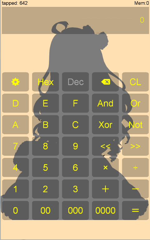 केवल हेक्साडेसिमल कैलकुलेटर के लिए साधारण कैलकुलेटर और प्रोग्रामर का अंकगणितपृष्ठभूमि मो मो ऐसी स्त्री छवि। नीचे दस्तक जब छवि बढ़ जाती है।