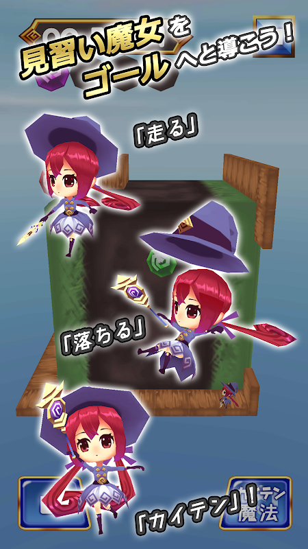 キューブ状のステージを移動、降下、カイテン!?見習い魔女を操作する立体迷路ゲーム!