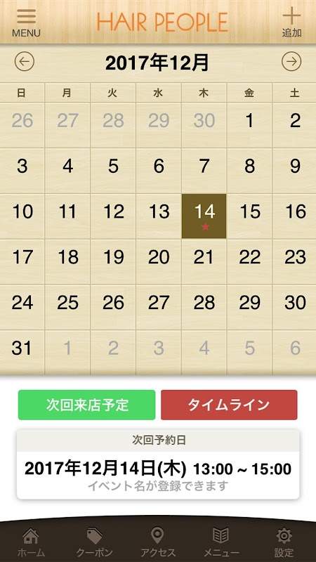 ●次回来店予定として、日付を登録すると前日にプッシュ通知でお知らせしてくれるリマインド機能があります。