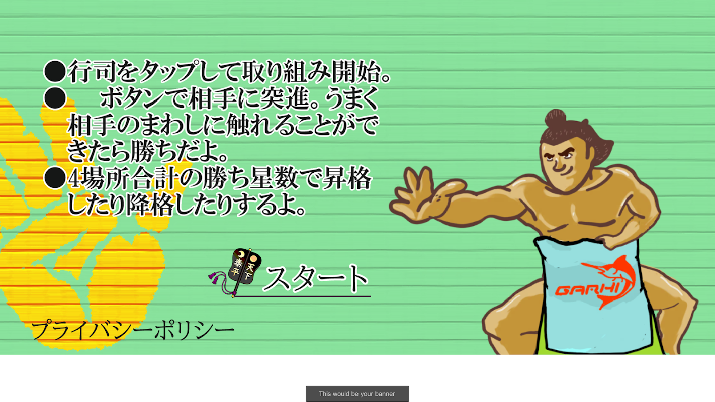 एक सरल खेल जहां खिलाड़ी (करयू टौमारू) एक महान योकोज़ुना बनने का लक्ष्य रखते हुए सूमो खेलता है और जीत जाता है!