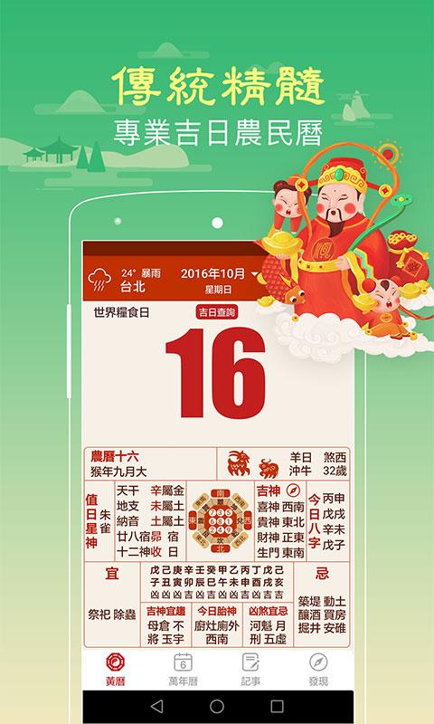【農曆】行事曆集合傳統曆法,不僅僅是簡單方便地查詢萬年曆,了解傳統日曆的種類含義,還可以根據出生時辰不同擇吉日,告訴你什麼時辰(幾點)做事更吉利,讓你趨利避凶,事事順利!