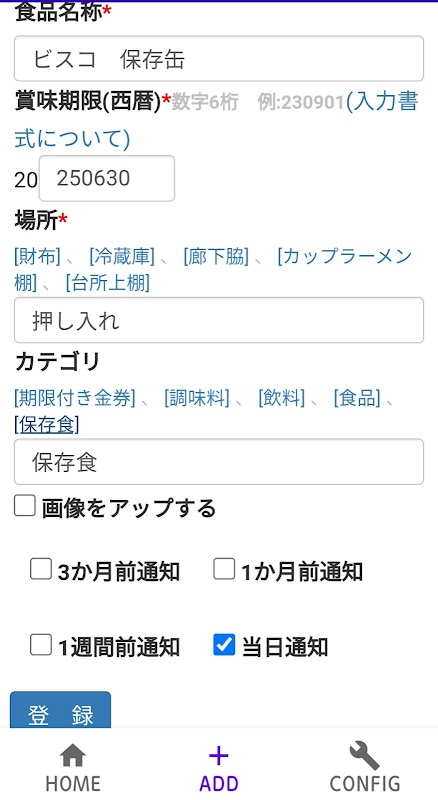 長期賞味期限アラート ~賞味期限が長め食品管理におすすめ~ 1.17