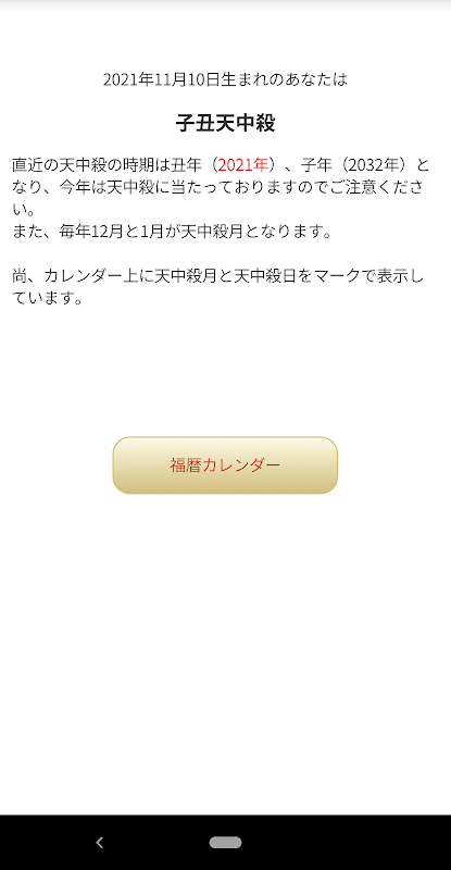 *2022年度版より、生年月日を設定していただくと、あなたの直近の天中殺の年と、毎年の天中殺月をお知らせいたします。また、天中殺月と天中殺日はカレンダー上にアイコンで表示いたします。
