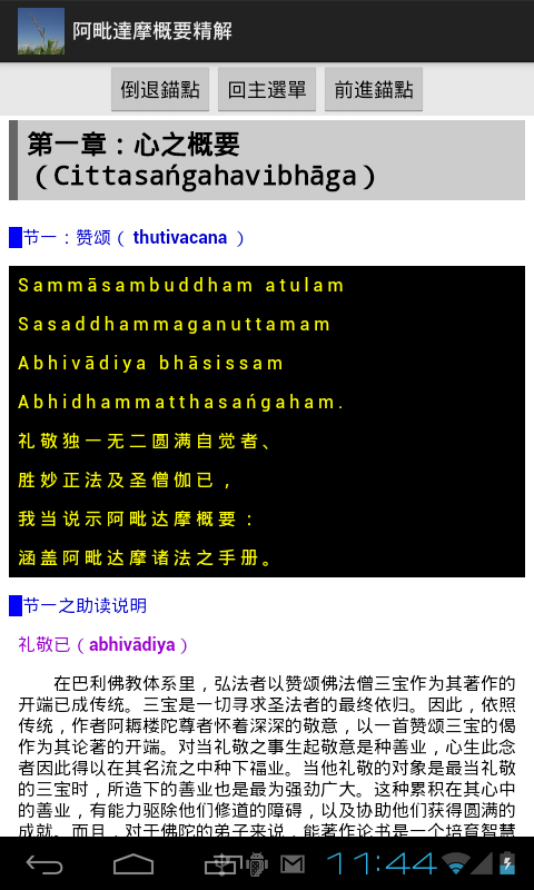 一部中世纪的佛教手册《阿毗达摩概要》,如今已成为上座部佛教最重要及最具影响力的课本之一。在厚约只有五十页的九章里,提供了佛教里最为深奥的《阿毗达摩论》的基本概要,也是所有南亚与东南亚上座部佛教国家修学阿毗达摩的标准入门书。