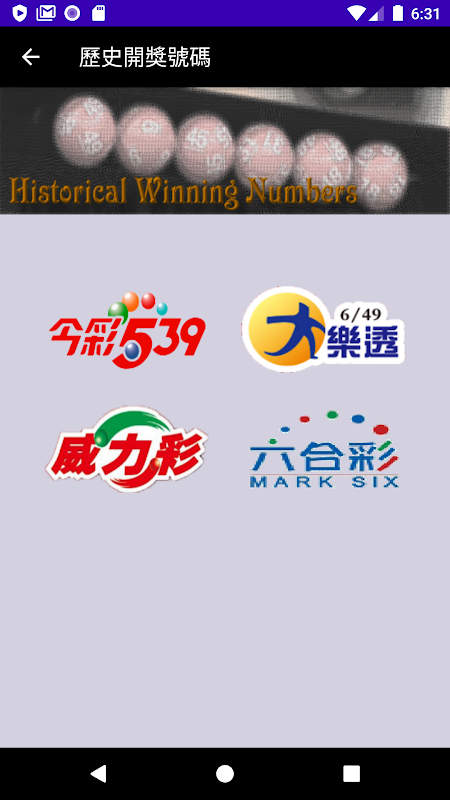 2. 提供今彩539、大樂透、威力彩與六合彩歷史開獎獎號查詢