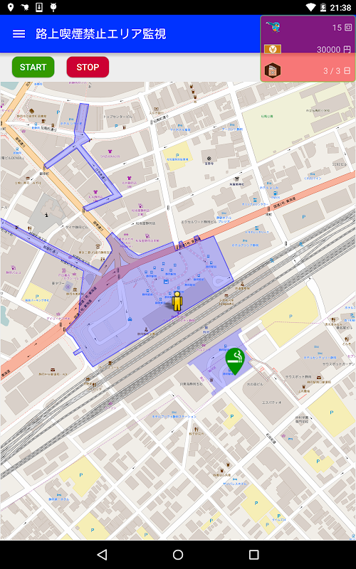 現在位置が静岡市の路上喫煙禁止エリア内であるかを監視・通知するアプリケーションです。静岡市のオープンデータ「路上喫煙禁止エリアマップ」を使用しています。