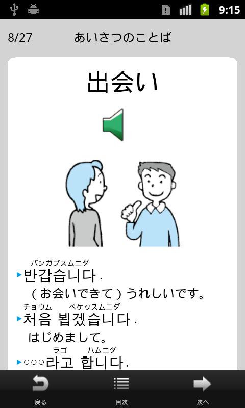 आप एक आवाज़ के साथ पाठ बीच में, "शब्दों की कक्षा" भी "कोरियाई नर्सरी कविता" "ग्रीटिंग", एक ही पाठ की प्रस्तावना में हंगुल तालिका सीख सकते हैं।
