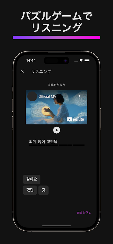 अनुशंसित वीडियो के साथ सभी शब्दावली/हंगुल/अर्थ/उच्चारण/व्याकरण में महारत हासिल करें! आपकी पसंदीदा कोरियाई सामग्री का उपयोग शिक्षण सामग्री के रूप में किया जा सकता है। निश्चित कोरियाई वीडियो शिक्षण सेवा जिसका उपयोग शुरुआती लोग भी कोरियाई-जापानी शब्दकोश के साथ कर सकते हैं।