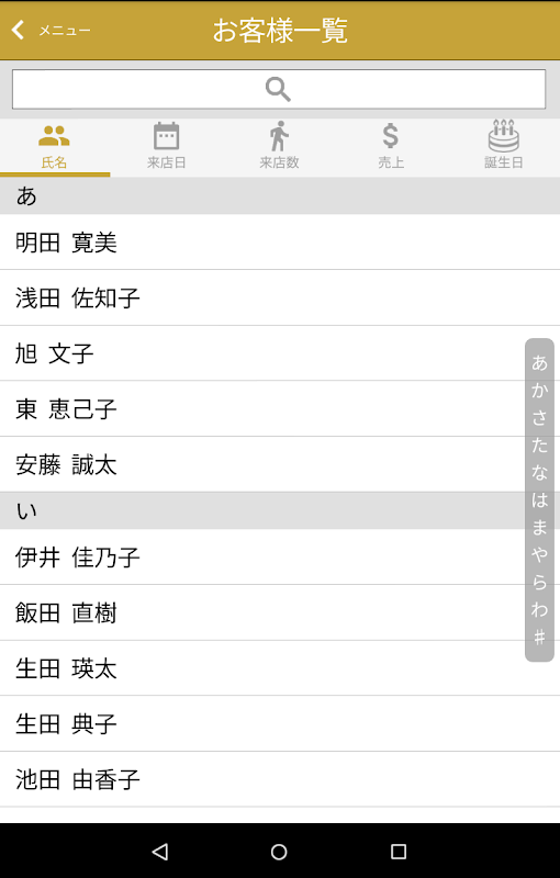 初回来店日、前回来店日、名前、誕生日、電話番号、メールアドレス、来店動機、職業、その他メモを管理