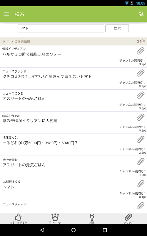 ・「ランキング」、「新着」、「クリップ」、「通知」は、番組名、抽出した食材名、番組内容の一部をご確認いただけます。