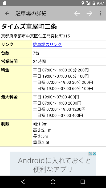 駐車場・検索 コインパーキングの料金計算と順位表示 1.4.8
