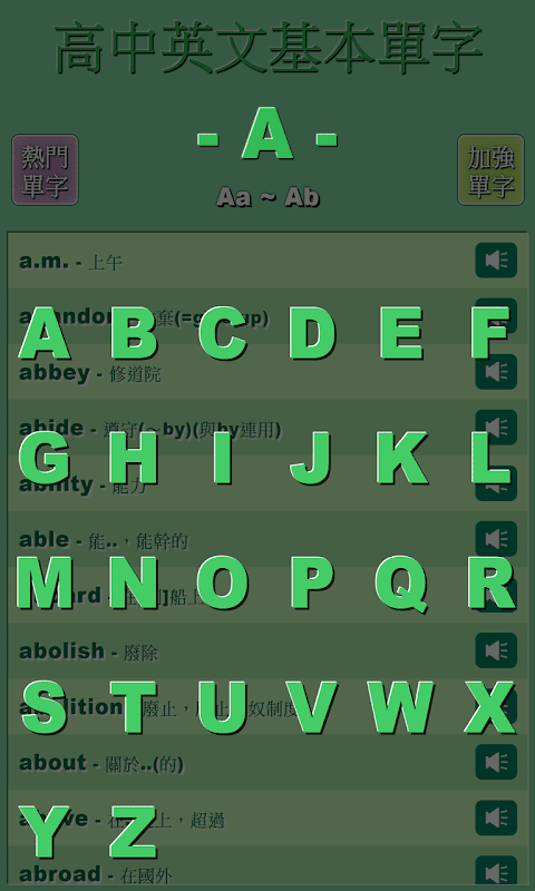 不熟悉的單字可加入加強單字反覆練習,還有不定時更新補充的熱門單字。