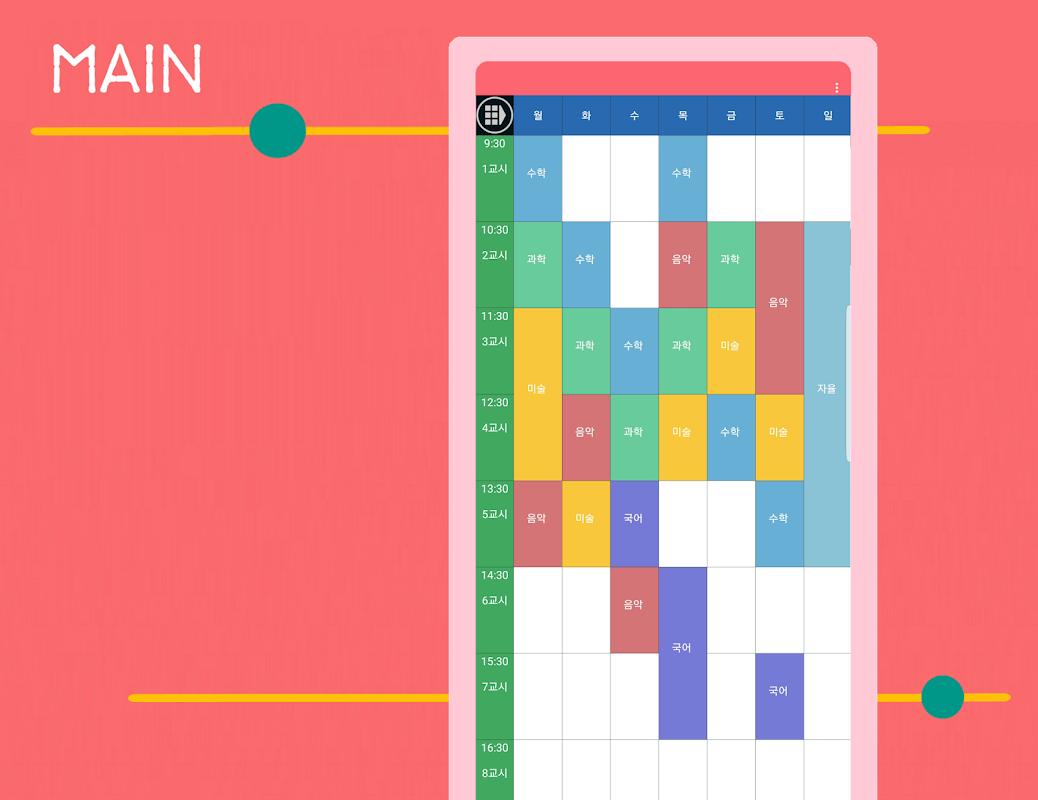 시간표 작성을 초초 간편하게! 여러가지 모습으로 시간표를 변신할 수 있어 어떤 시간표에나 적용이 가능하고 쉽고 간단히 시간표를 관리할 수 있어요