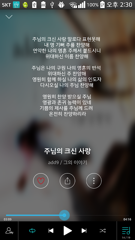 찬양을 들을 수 있는 큐레이션이 강한 뮤직 어플입니다.