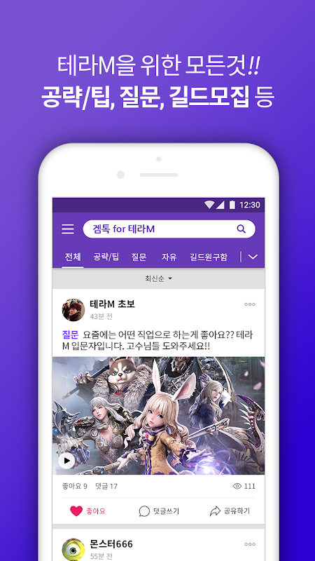 겜톡 for 테라M에서 많은 정보를 얻고 다른 유저들과 소통해보세요.