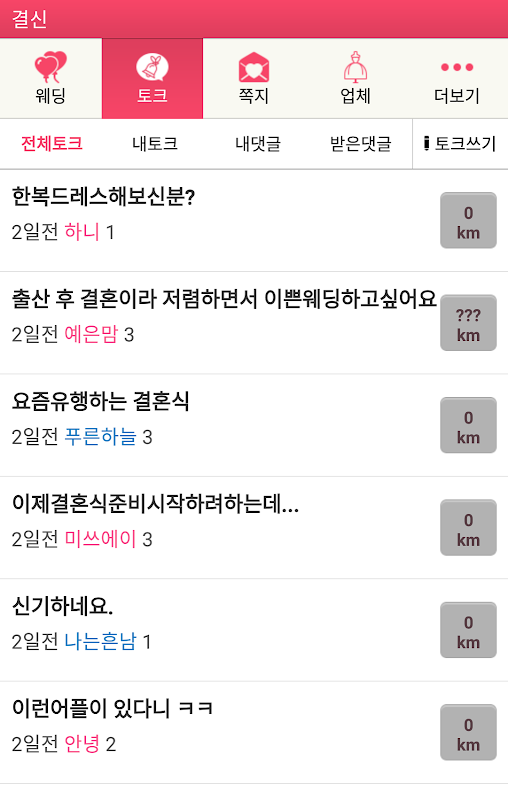 - 다른 회원들과 결혼정보를 교환하기 위한 토크