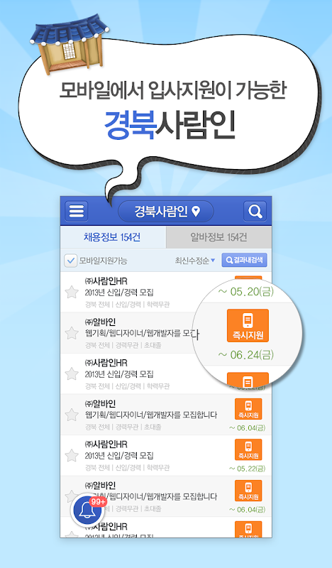 이제 모바일에서 경북 취업 한방에 끝낸다!