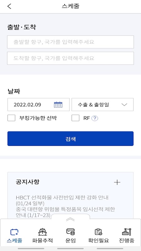 - 구간, 선박, 나의 스케쥴에 대한 선박 스케쥴