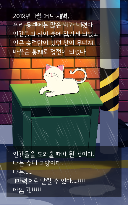 고양이의 발바닥으로 전기를 발생시키고 마을을 구한다.