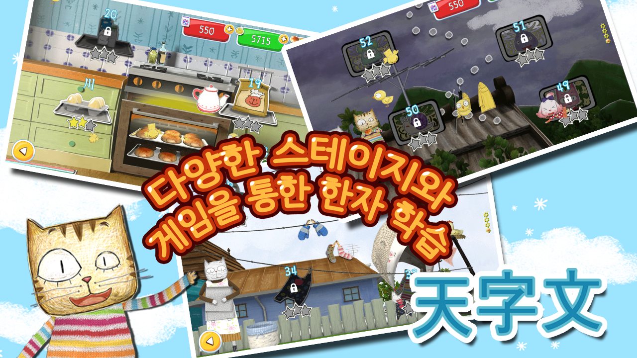 아동 교육용으로 적합하고 친숙한 구름빵 캐릭터를 활용하여 천자문을 (쓰고,보고,형태를 익히고, 맞추기) 게임을 통해서 천자문 한자를 학습하는 기능성 게임 입니다.
