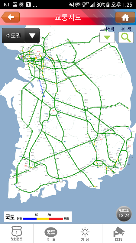 고속도로 노선별 소통상황과 CCTV 정보를 제공하며,