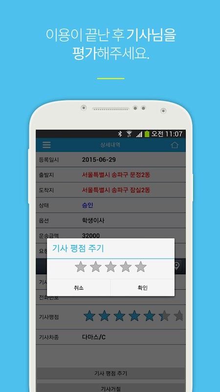 기사님들은 확실한 신원과 훌륭한 실력을 갖추신 엄선된 분들입니다.