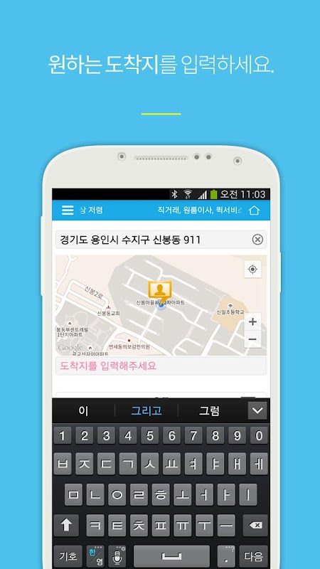 정확한 주소를 모르셔도 지도상에 간편하게 픽업위치를 설정하세요.