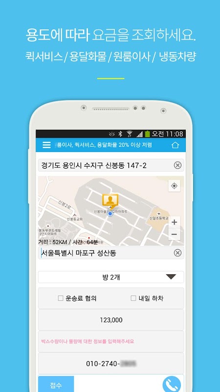 한번의 터치로 퀵서비스, 용달차량을 부를 수 있고