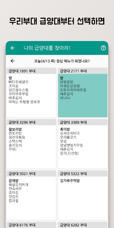 군인의 식탁 - 식단 알리미(육군,해군,공군) APK जानकारी