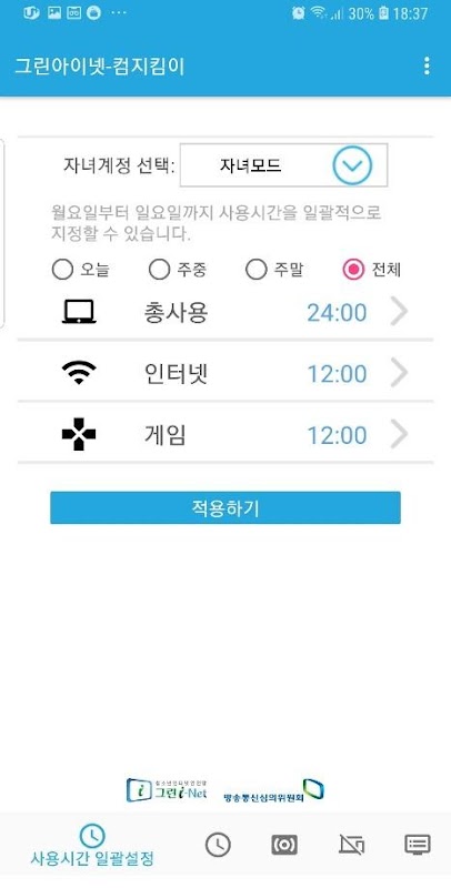 - 오늘: 오늘(해당 요일) 사용시간 설정