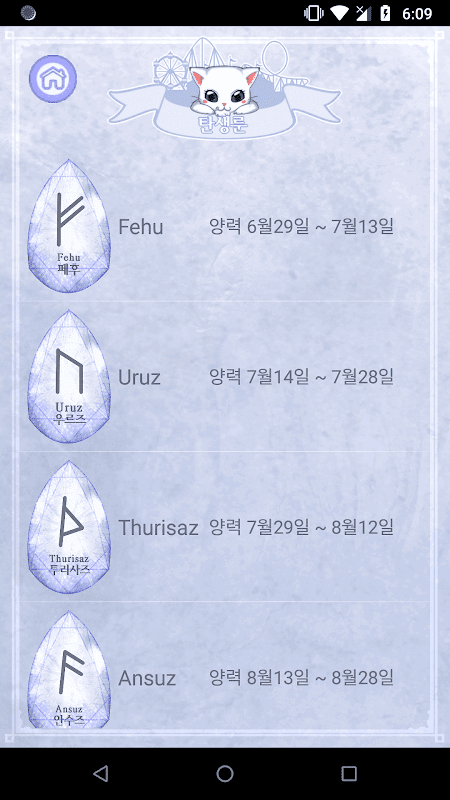 [냥이룬]에서는 24가지 룬 문자를 사용합니다.