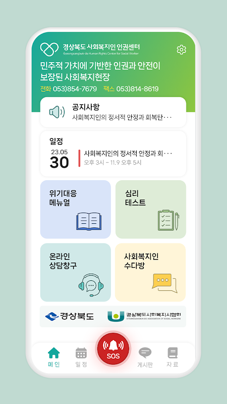 ग्योंगसांगबुक-डो सोशल वेलफेयर ह्यूमन राइट्स सेंटर ने ग्योंगसांगबुक-डो और ग्योंगसांगबुक-डो सोशल वर्कर्स एसोसिएशन के साथ एक कंसाइनमेंट अनुबंध पर हस्ताक्षर किए, ताकि सुरक्षित कामकाजी माहौल बनाकर और व्यक्तिगत सुरक्षा की रक्षा सहित एक सहायता प्रणाली स्थापित करके निवासियों को गुणवत्तापूर्ण सामाजिक कल्याण सेवाएं प्रदान की जा सकें। सामाजिक कार्यकर्ताओं के मानवाधिकार हम इसका संचालन कर रहे हैं।