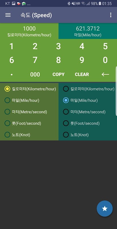 √ 속도/스피드 변환 가능 단위