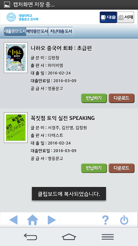 Daelim विश्वविद्यालय की सेवाओं का उपयोग किताबें, युवा Poong ई पुस्तक पुस्तकालय अपने स्मार्टफोन पर आसान उपयोग के लिए कॉन्फ़िगर किया गया है।