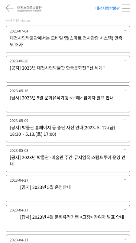 모바일 기기를 이용해 대전시립박물관 및 대전선사박물관, 대전근현대사전시관의 전시를 관람 할 수 있는 앱 입니다.