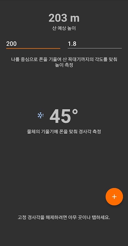 डिजिटल इनक्लिनोमीटर फोन को झुकाकर किसी वस्तु के झुकाव को माप सकता है, और यह त्रिकोणमितीय कार्यों का उपयोग करके पर्वत की ऊंचाई को माप सकता है।