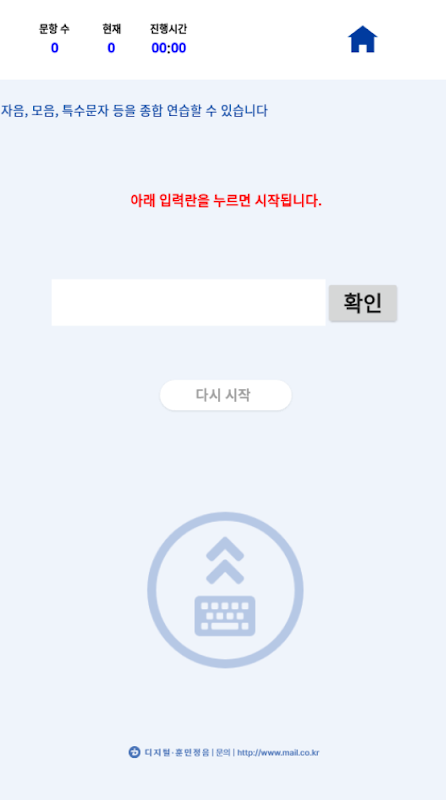 한글 자음, 모음, 숫자, 특수 문자 등을 연습할 수 있습니다.