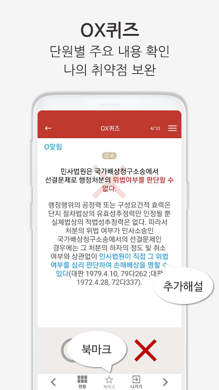 - 구성 : 단원별 최대 10문제씩 랜덤 OX퀴즈 풀이를 하실 수 있습니다.