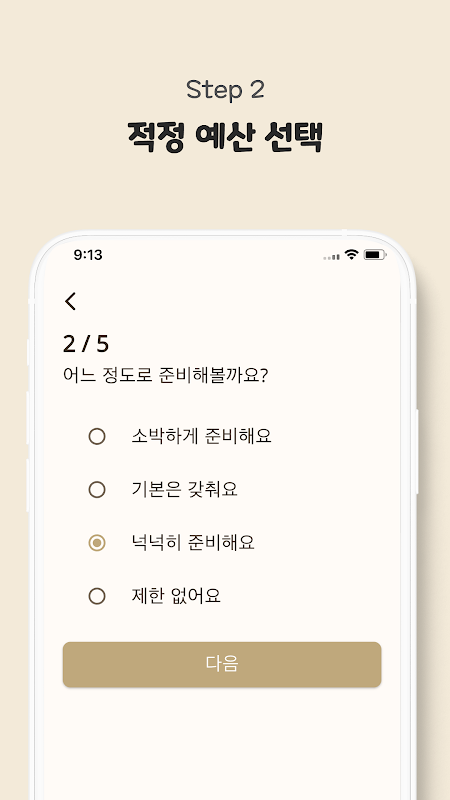 재료, 예산, 난이도, 취향 조건 입력 지원