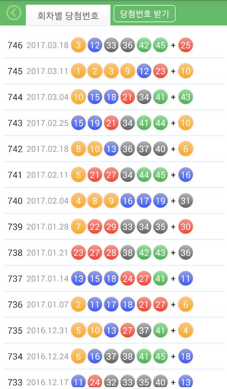 전체, 5주, 10주, 15주 등 다양한 기간, 보너스 포함여부 등 생성규칙을 지정하는 다양한 조건으로 조회할 수 있습니다.